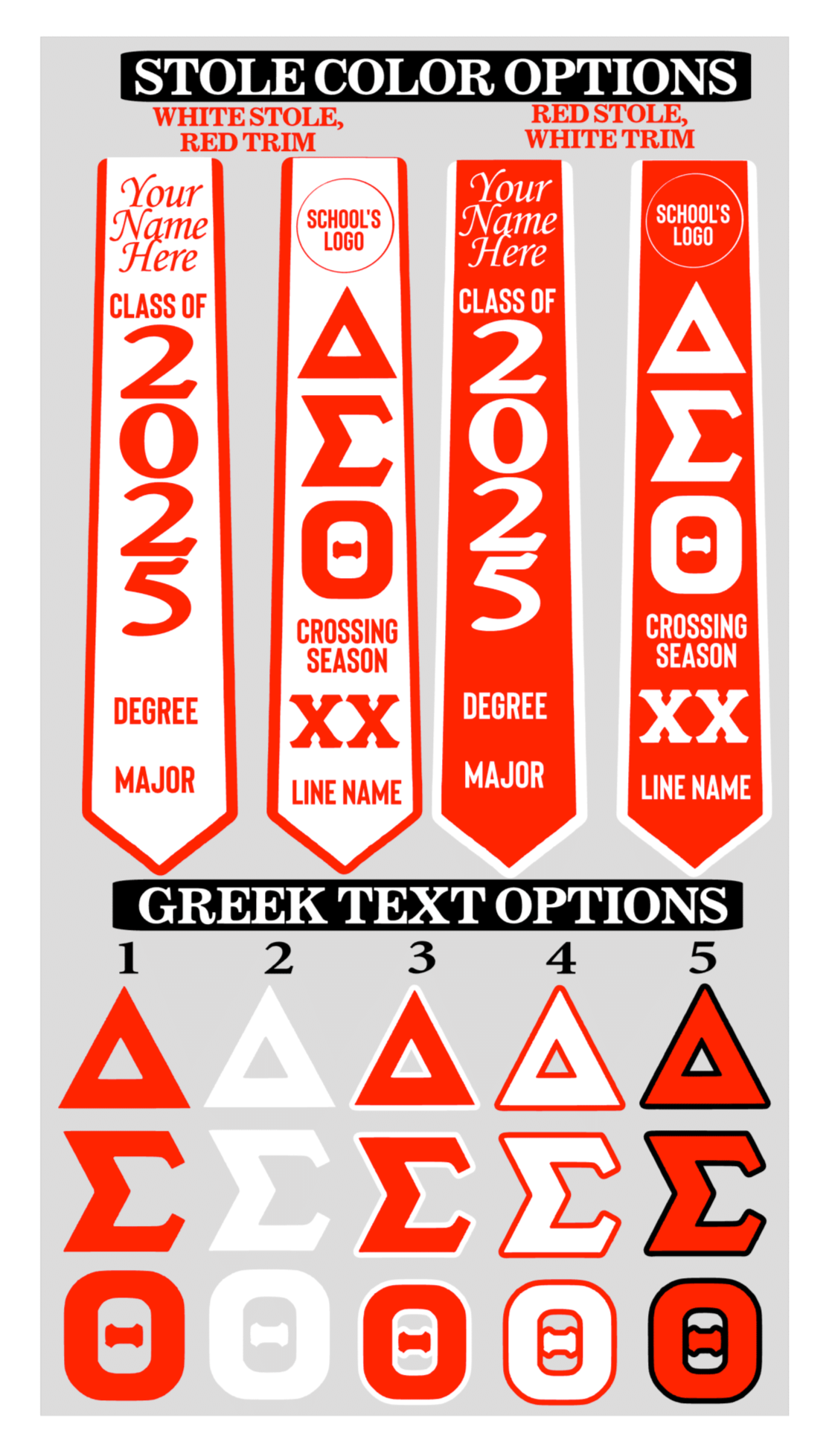 This stole is a predesigned stole for the women of Delta Sigma Theta Sorority, Inc. (ΔΣΘ). Customers will fill out sections below to make their own stole. THIS IS PREDESIGNED so it will look exactly like the example with your own information, colors, and modifications.